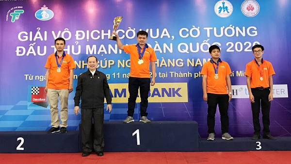 Nguyễn Đức Hòa (giữa) vô địch cờ tiêu chuẩn lẫn cờ chớp