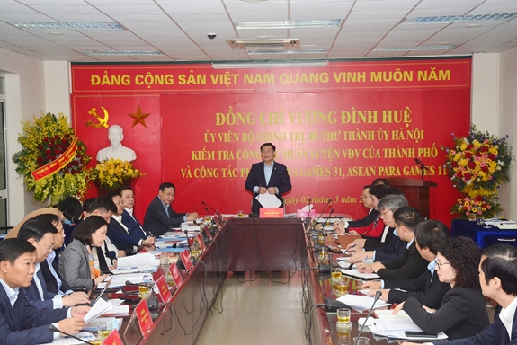 Cũng trong chiều 2.3, Bí thư Thành uỷ Hà Nội đã kiểm tra, khảo sát địa điểm tổ chức môn Wushu là Trung tâm văn hoá, thông tin và thể thao quận Cầu Giấy và nơi tổ chức môn Đấu kiếm là Cung thi đấu điền kinh trong nhà…