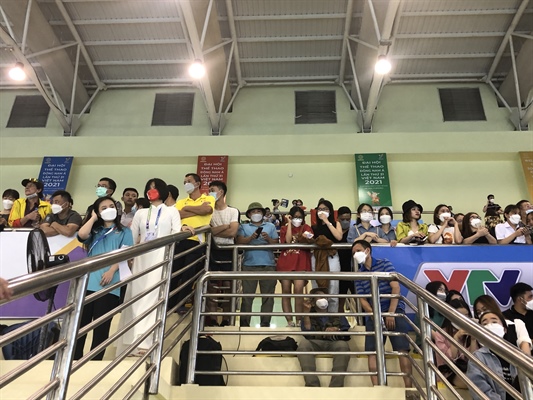 Nhiều khán giả không thể ngồi yên trước màn trình diễn của các tay bơi Việt Nam. Ảnh: Đ.T