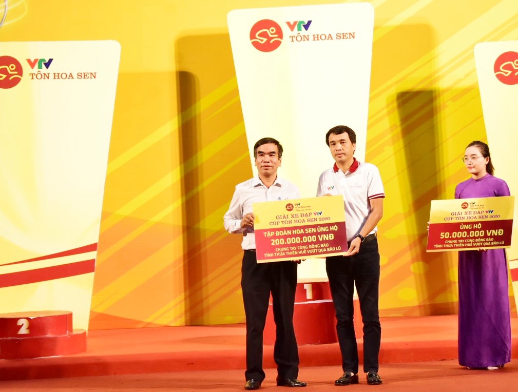 Cụ thể, Tập đoàn Tôn Hoa Sen và Ban Tổ chức giải đã trao 250 triệu đồng đến Ủy ban Mặt trận Tổ quốc Việt Nam tỉnh Thừa Thiên Huế để góp phần chung tay hỗ trợ người dân trên địa bàn tỉnh khắc phục thiệt hại do bão, lũ gây ra. Đồng thời nhằm tri ân, chia sẻ mất mát, đau thương với các thân nhân của 13 liệt sỹ đã hy sinh khi làm nhiệm vụ cứu hộ ở thủy điện Rào Trăng 3, Tập đoàn Tôn Hoa Sen và Ban Tổ chức giải cũng đã trao 130 triệu đồng đến đại diện gia đình các liệt sỹ.