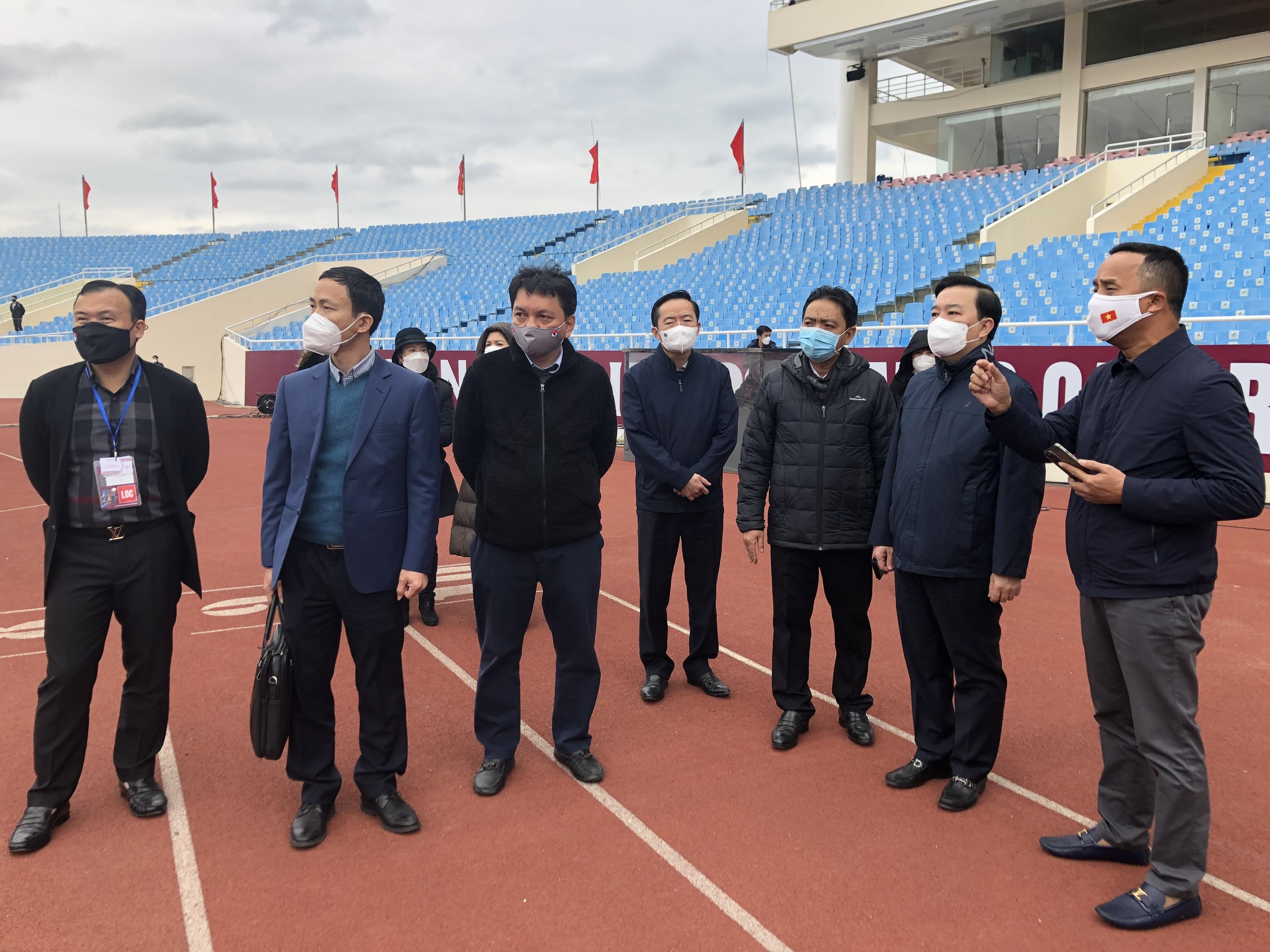 Đoàn kiểm tra do Thứ trưởng Bộ VHTTDL Hoàng Đạo Cương, Phó Chủ tịch UBND TP. Hà Nội Chử Xuân Dũng dẫn đầu. Ngoài ra, còn có ông Trần Đức Phấn, Phó Tổng Cục trưởng Phụ trách Tổng cục TDTT, đại diện Liên đoàn Bóng đá Việt Nam cùng các Sở liên quan của thành phố.