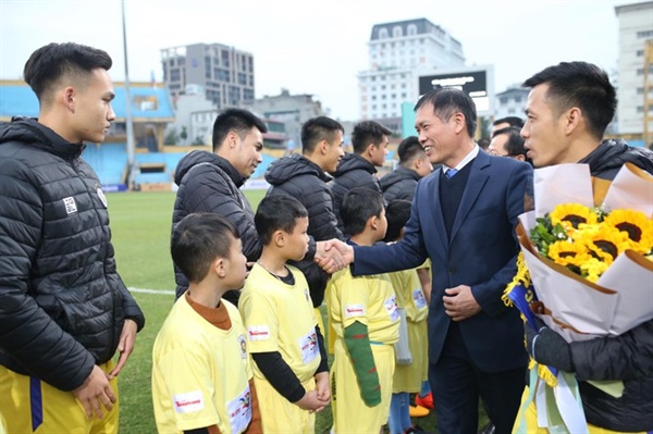 Phó Tổng Cục trưởng phụ trách Tổng cục TDTT Trần Đức Phấn tặng hoa cho hai đội