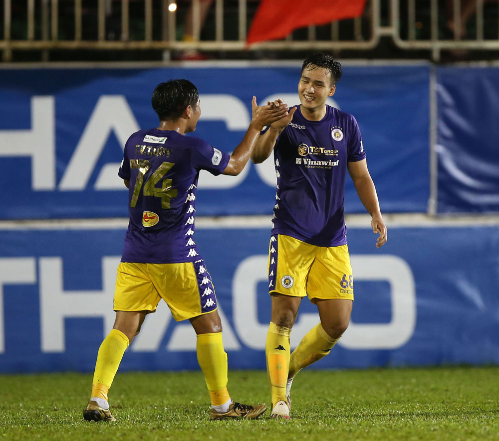 CLB Hà Nội (áo xanh) có trận thắng dễ dàng trên sân khách. Ảnh: VPF