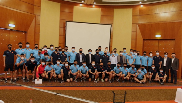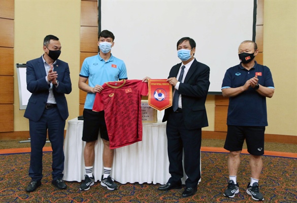 Thay mặt LĐBĐVN và đội tuyển, Phó chủ tịch thường trực LĐBĐVN Trần Quốc Tuấn đã cảm ơn sự quan tâm của Đại sứ Nguyễn Mạnh Tuấn cũng như lãnh đạo Đại sứ quán Việt Nam tại UAE đối với đội tuyển. Cách đây 2 năm, khi sang UAE thi đấu VCK Asian Cup 2019, ĐT Việt Nam cũng được đón nhận tình cảm và sự hỗ trợ rất tích cực của Đại sứ quán Việt Nam và cộng đồng người Việt Nam tại UAE.