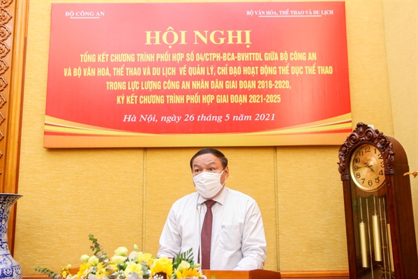 Bộ trưởng Nguyễn Văn Hùng khẳng định, Bộ VHTTDL sẽ phối hợp chặt chẽ với Bộ Công an để triển khai thực hiện 8 nội dung, nhiệm vụ trong Chương trình phối hợp giai đoạn 2021-2025, chỉ đạo các đơn vị liên quan phối hợp, hỗ trợ phong trào tập luyện TDTT, rèn luyện thể lực của cán bộ, chiến sỹ và phát triển thể thao thành tích cao trong lực lượng Công an nhân dân.