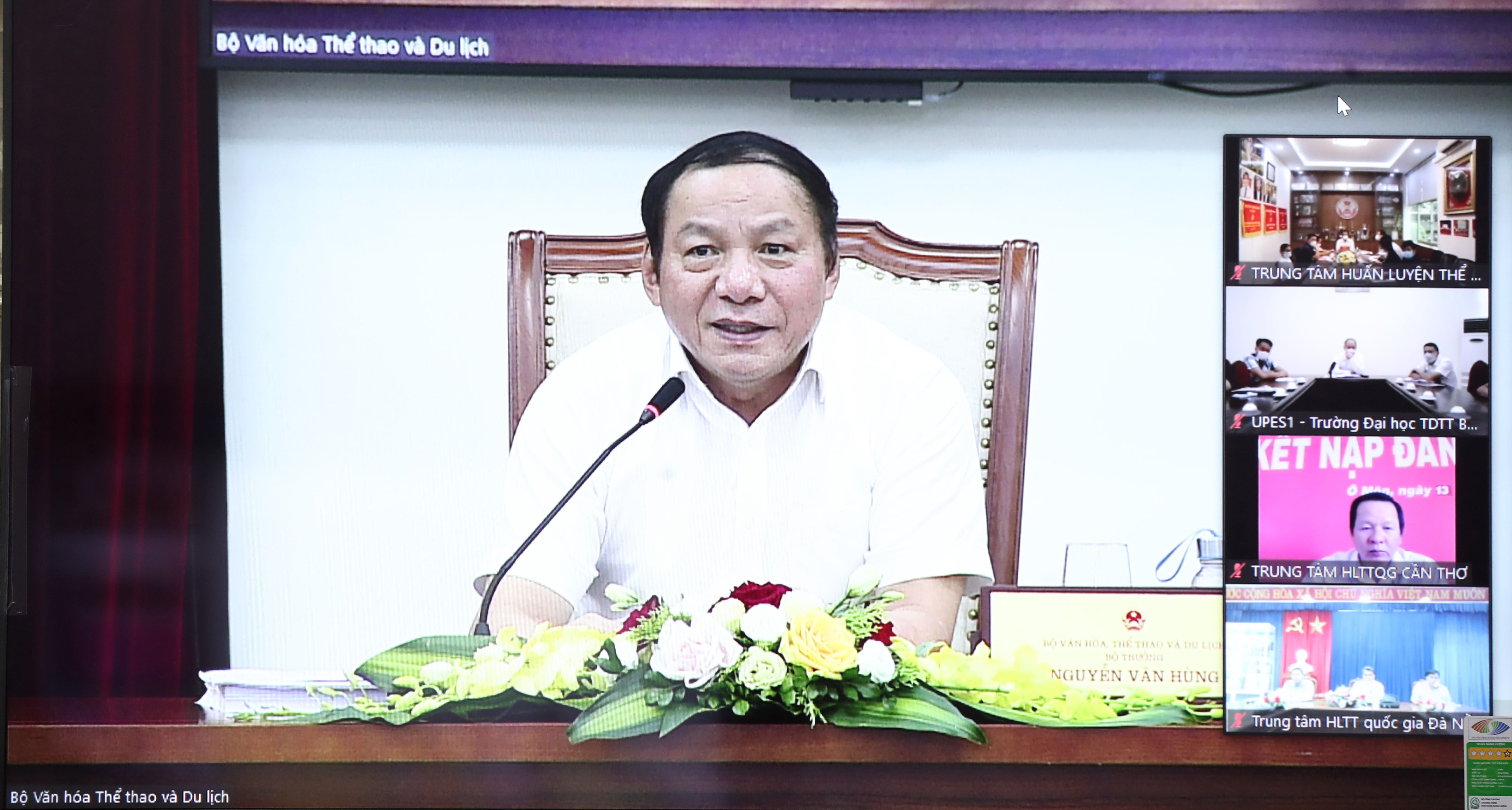 Cùng dự buổi làm việc còn có Thứ trưởng Bộ VHTTDL Hoàng Đạo Cương. Ngoài điểm cầu chính tại Hà Nội, buổi làm việc còn có sự tham gia trực tuyến của Trường Đại học TDTT Bắc Ninh và 3 Trung tâm HLTTQG đặt tại TP.HCM, Cần Thơ, Đà Nẵng.