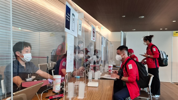 Sau khi vào sân bay, Đoàn Thể thao Việt Nam đã nhận được sự hỗ trợ nhiệt tình của các tình nguyện viên Nhật Bản. Thủ tục đầu tiên mà BTC nước chủ nhà yêu cầu với thành viên các Đoàn nước ngoài là phải trình việc cài đặt phần mềm theo dõi sức khỏe OCHA, theo quy định của BTC Đại hội.