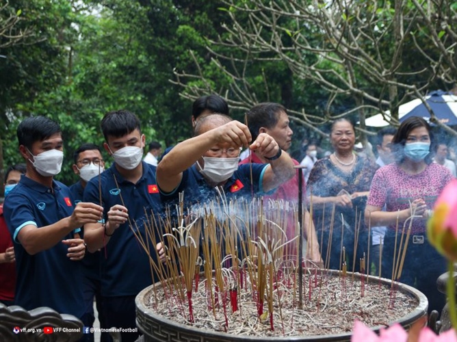 HLV Park Hang-seo và các học trò dâng hương tưởng niệm các Vua Hùng