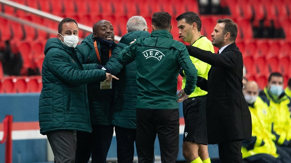 Vụ việc xảy ra ở phút 13 của trận đấu, trợ lý HLV Pierre Webo của Istanbul Basaksehir phản đối quyết liệt một quyết định của trọng tài thứ 4 người Romania - Sebastian Coltescu. Trợ lý của đội bóng Thổ Nhĩ Kỳ nhận thẻ đỏ vì lỗi phản ứng thái quá.