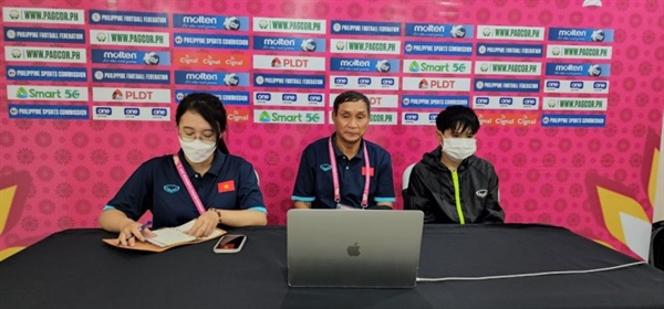 Cơn mưa lớn khiến mặt sân cỏ nhân tạo của Binan sũng nước, điều này ảnh hưởng rất nhiều đến lối chơi của tuyển nữ Việt Nam. “Trước trận đấu, mưa to ở Binan. Điều đó khiến cho sân trơn và ảnh hưởng nhiều đến lối chơi của toàn đội. Với điều kiện mặt sân như vậy, tuyển nữ Việt Nam không thể chuyền bóng ngắn mà phải chơi bóng dài. Lối đá này không thể hiệu quả như mong đợi khi Campuchia chủ động chơi phòng ngự số đông và sẵn sàng phá bóng lên. Dù vậy như tôi đã nói, tuyển nữ Việt Nam vẫn chơi đúng ý đồ của ban huấn luyện, đảm bảo yếu tố 3 điểm và bảo toàn lực lượng. Các cầu thủ cũng không bị thẻ phạt”, HLV Mai Đức Chung nói tiếp.