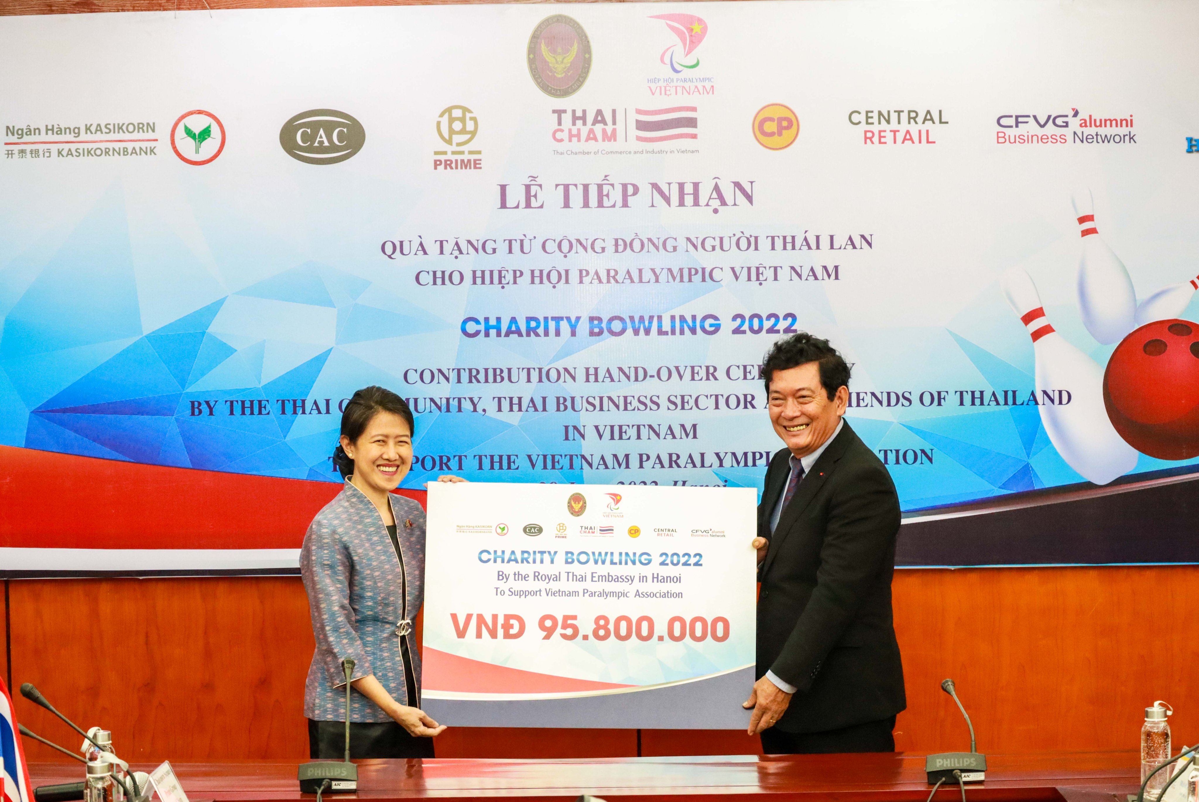 Trong thời gian qua, Đại sứ quán Thái Lan đã kết nối với các doanh nghiệp, cộng đồng người Việt Nam tại Thái Lan tổ chức quyên góp, thiện nguyện ủng hộ cho hoạt động của thể thao người khuyết tật Việt Nam. Đặc biệt, Đại sứ quán Thái Lan vừa tổ chức Giải Bowling thiện nguyện tại Roal City, Hà Nội để kêu gọi sự đóng góp ủng hộ cho thể thao người khuyết tật Việt Nam.
