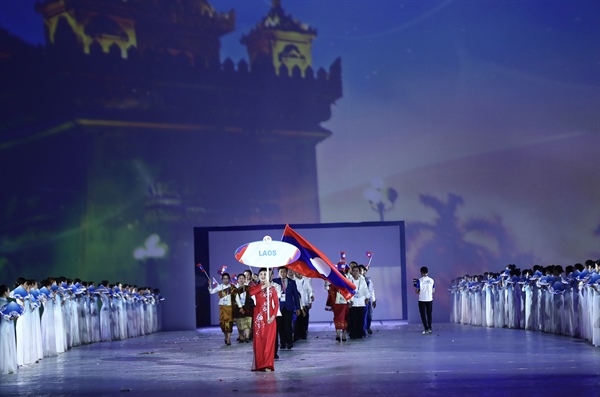 Xuất hiện đầu tiên trong màn diễu hành của 11 quốc gia tham dự Đại hội là đoàn Brunei Darusalam. Tiếp theo là các đoàn: Campuchia - Indnonesia - Lào - Malaysia - Myanmar - Philippines - Singapore - Thái Lan - Timor Leste và cuối cùng là đoàn chủ nhà Việt Nam. Tại SEA Games này, Đoàn thể thao Việt Nam gồm 1.341 thành viên với 951 VĐV tranh tài ở 40 môn thi đấu. Dẫn đầu đoàn vận động viên Việt Nam là “kình ngư” Nguyễn Huy Hoàng - HCB Asian Games môn Bơi.
