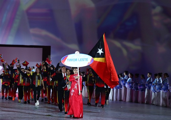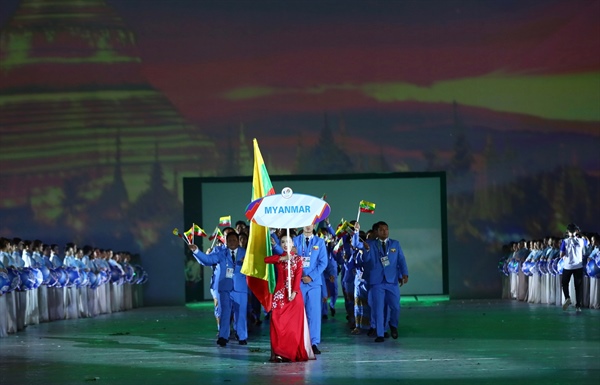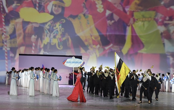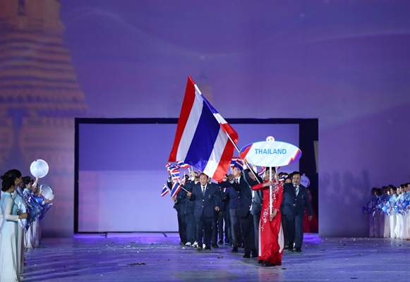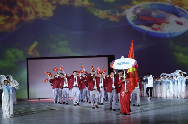 Xuất hiện đầu tiên trong màn diễu hành của 11 quốc gia tham dự Đại hội là đoàn Brunei Darusalam. Tiếp theo là các đoàn: Campuchia - Indnonesia - Lào - Malaysia - Myanmar - Philippines - Singapore - Thái Lan - Timor Leste và cuối cùng là đoàn chủ nhà Việt Nam. Tại SEA Games này, Đoàn thể thao Việt Nam gồm 1.341 thành viên với 951 VĐV tranh tài ở 40 môn thi đấu. Dẫn đầu đoàn vận động viên Việt Nam là “kình ngư” Nguyễn Huy Hoàng - HCB Asian Games môn Bơi.