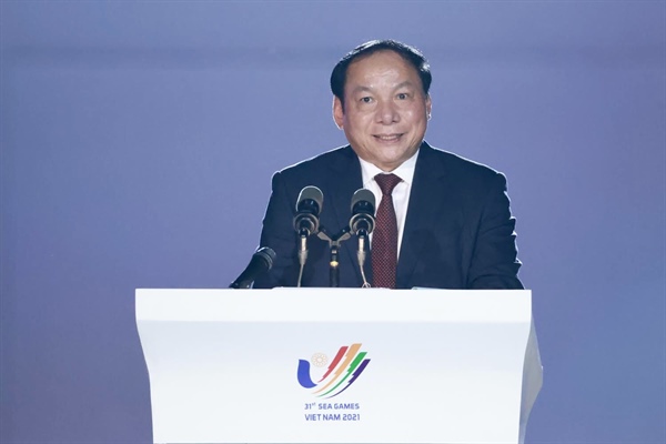 Gửi lời chào nồng ấm tới các vị khách của SEA Games 31, Bộ trưởng Nguyễn Văn Hùng điểm qua lịch sử của SEA Games và nhấn mạnh, thể thao Đông Nam Á đã đi qua 30 kỳ SEA Games mang đậm dấu ấn của sự phát triển. Cùng với tinh thần thể thao cao thượng và trong sáng, cộng đồng các quốc gia Đông Nam Á đã luôn phát huy sức mạnh của mình vì hòa bình, ổn định và phát triển. Tinh thần đoàn kết hữu nghị, năng động sáng tạo, ứng phó linh hoạt trước những thách thức, khó khăn đã tạo ra đặc trưng cơ bản trong quá trình hình thành và phát triển của khối. Đặc biệt, khi bối cảnh đại dịch Covid-19 tác động nặng nề đến kinh tế - xã hội của các quốc gia thì đặc trưng nổi trội đó lại được phát huy một cách mạnh mẽ. Chúng ta đã kiểm soát, đẩy lùi dịch bệnh để tiến tới tổ chức SEA Games 31. Dẫu còn những khó khăn nhất định, nhưng công tác chuẩn bị cho SEA Games 31 đã hoàn tất, tất cả đều sẵn sàng cho một kỳ Đại hội an toàn và thành công. Nhân dân Việt Nam nói riêng, nhân dân các nước Đông Nam Á và bạn bè quốc tế nói chung đang rất hào hứng chào đón các cuộc tranh tài hấp dẫn của gần 5.000 vận động viên với 40 môn thi đấu, 525 bộ huy chương sẽ được trao tại Đại hội này.