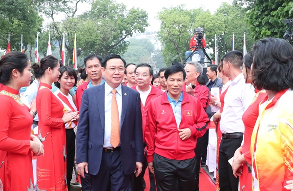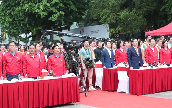 Ủy viên Bộ Chính trị, Bí thư Thành uỷ Hà Nội Vương Đình Huệ; Ủy viên Ban Chấp hành Trung ương Đảng, Bộ trưởng Bộ VHTTDL Nguyễn Ngọc Thiện, Trưởng ban tổ chức SEA Games 31 và ASEAN Para Games 11 Nguyễn Ngọc Thiện và các đại biểu dự lễ khởi động
