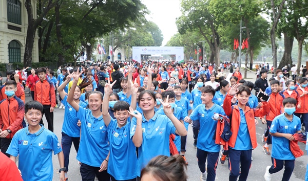 Ngay sau lễ bấm nút "Khởi động cùng SEA Games 31", các vị đại biểu và 2.000 VĐV tham gia màn chạy đồng hành cùng SEA Games 31