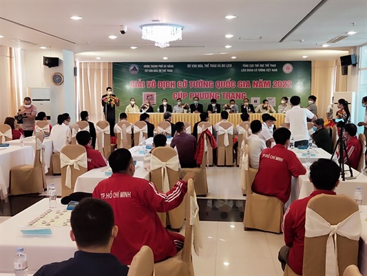Giải cờ tướng toàn quốc 2022 thi đấu từ này 19 đến 26.2, có sự tham dự của 103 kỳ thủ (24 nữ) đến từ 11 đơn vị có phong trào cờ tướng mạnh là: TP.HCM, Đà Nẵng, Bình Dương, Bình Định, Bình Phước, Bộ Công an, Quảng Ninh, Hà Nội, Bà Rịa - Vũng Tàu, Quảng Ngãi và Thái Nguyên.