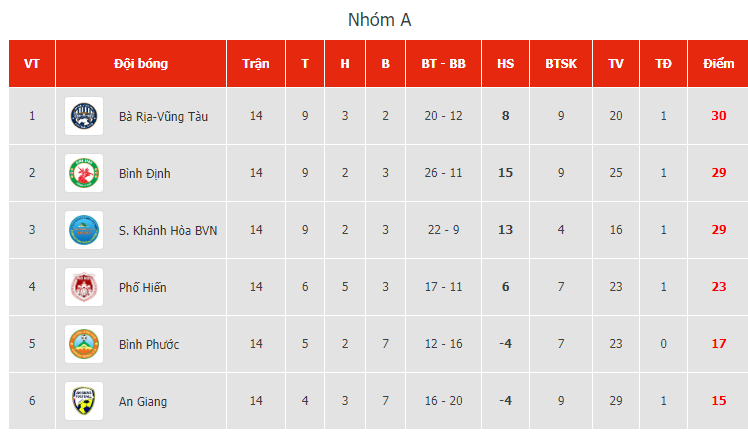 Ở vòng 15 diễn ra vào ngày 24.10 tới, Bà Rịa - Vũng Tàu sẽ làm khách trên sân của đội xếp thứ 6 An Giang, trong khi S. Khánh Hoà BVN có lợi thế sân nhà để tiếp Bình Định. Ở lượt đấu cuối vào ngày 31.10, Bà Rịa - Vũng Tàu tiếp S. Khánh Hoà BVN còn Bình Định sẽ gặp đội khách Phố Hiến.