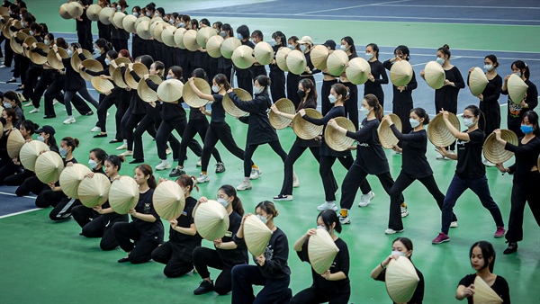 Nhóm tập của NSND Hồng Phong có khoảng 250 người đang tập màn múa tre. Trưởng nhóm tập, biên đạo múa Phạm Thanh Tùng cho biết: “Chúng tôi đang tập những màn múa để minh hoạ cho các ca khúc trong chương trình. Màn đầu tiên với hình ảnh cây tre Việt Nam sẽ kết hợp với bài Việt Nam xin chào. Cây tre với biểu tượng sức sống mãnh liệt, sự đoàn kết, bền vững, dẻo dai, bất khuất của người Việt Nam. Hay màn múa sen, biểu tượng của sự tinh khiết, sự trong sáng, bao dung, trong tinh thần thể thao như cái tinh thần chung của người Việt. Đó là những hình ảnh chúng tôi muốn giới thiệu một cách khái quát về con người Việt Nam”. Dưới cái nắng oi ả, hàng trăm người miệt mài cầm những cây sào tre dài 3 - 4 m thực hiện theo lệnh của nhóm trưởng. Nghệ sĩ Linh Nga sẽ solo múa hoa sen và nghệ sĩ violin Bùi Công Duy, nghệ sĩ Liễu Giang sẽ thể hiện tài năng trong bài Đường đến Việt Nam với hình ảnh tà áo dài và nón lá, thể hiện một Việt Nam thân thiện và lay động lòng người…