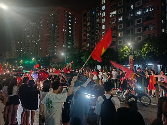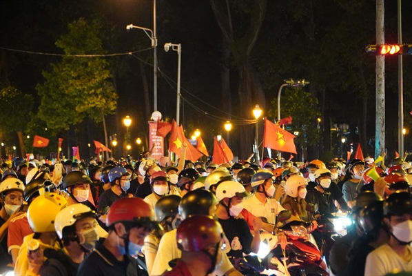 Các tuyến phố lớn của TP.HCM có rất đông người hâm mộ đỗ ra đường ăn mừng