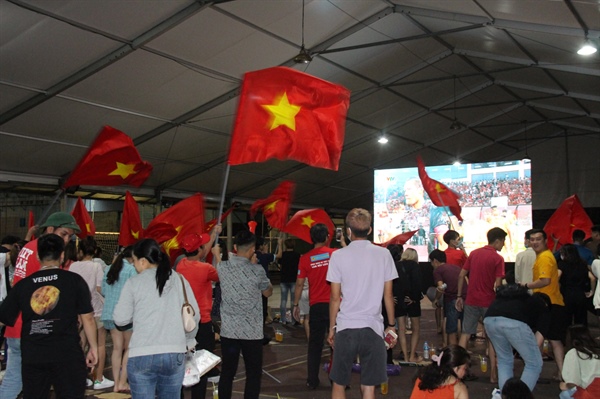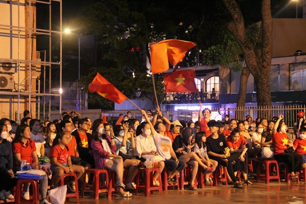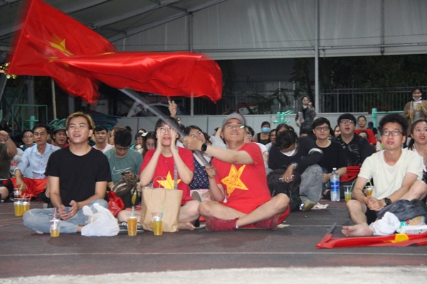 Tại Trung tâm TDTT Hoa Lư (quận 1, TP.HCM), cũng có đông người hâm mộ đến xem qua màn hình lớn và cổ vũ cho thầy trò HLV Park Hang-seo