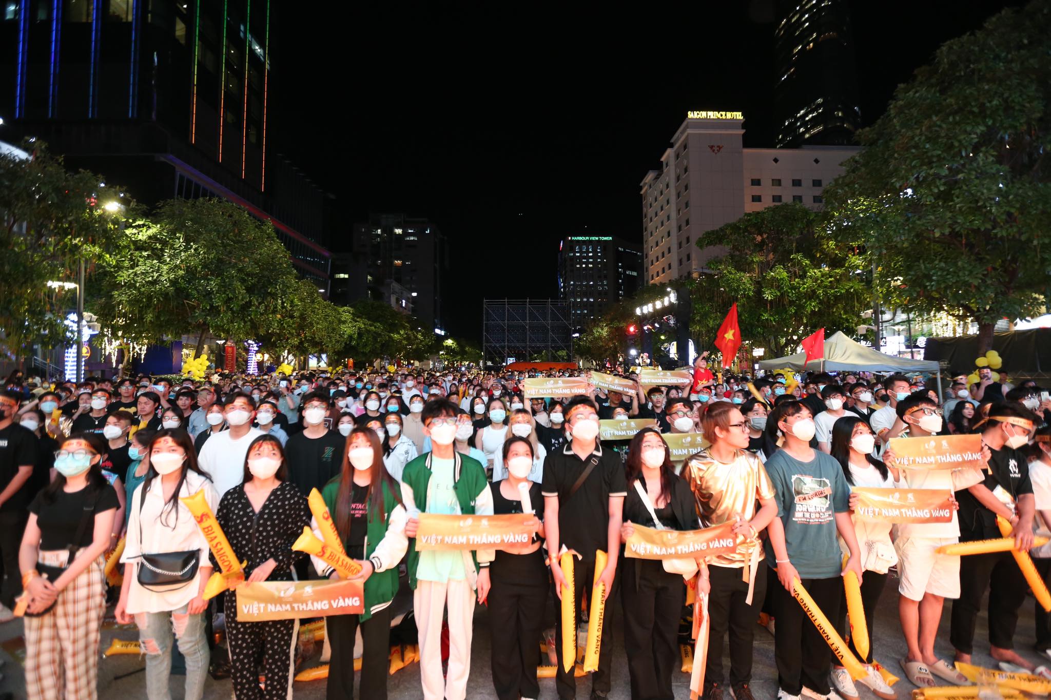 Trận đấu giữa U23 Việt Nam và U23 Indonesia diễn ra vào lúc 19h00 nhưng trước 17h30 đã có khá đông các cổ động viên đến Phố đi bộ Nguyễn Huệ để lựa cho mình một ví trí đẹp để cổ vũ cho U23 Việt Nam.