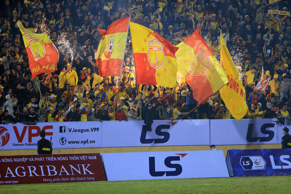 V.League đánh dấu mùa giải mới bằng khán đài đầy ắp CĐV trên sân Thiên Trường (Nam Định) Ảnh: VPF