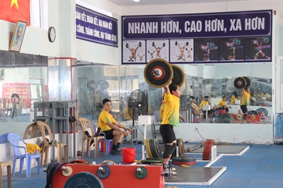 Các vận động viên bộ môn Cử tạ tập luyện tại Trung tâm Huấn luyện thể thao quốc gia Đà Nẵng
