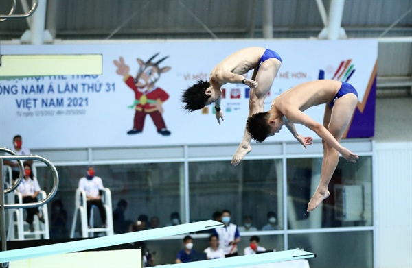 Kết thúc phần thi đấu, đôi nam của Nhảy cầu Việt Nam đoạt HCB trong khi đôi nam của Malaysia đoạt HCV. Như vậy trong ngày thi đấu 8.5, Đoàn Thể thao Việt Nam đã có 1 HCB, 1 HCĐ của Nhảy cầu. Chiều nay cũng là ngày Kickboxing khởi tranh thi đấu vòng loại và đội tuyển Bóng ném Việt Nam có trận đấu gặp Thái Lan ở lượt cuối lượt đi tại Quảng Ninh.