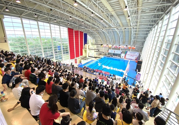 Đông đảo người hâm mộ đã đến cổ vũ cho VĐV Nhảy cầu
