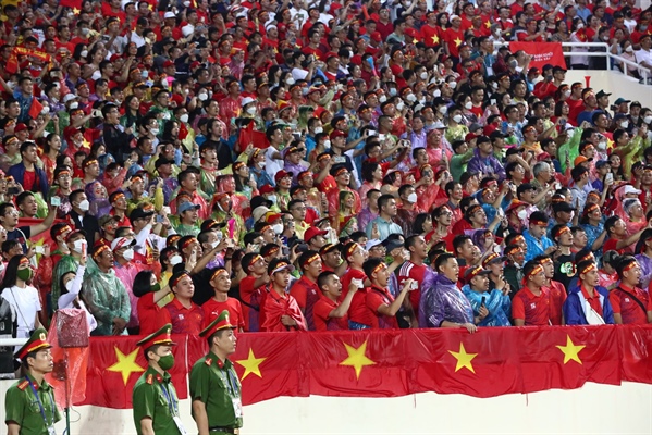 Với một trận chung kết trong mơ giữa U23 Việt Nam và U23 Thái Lan thì không có gì ngạc nhiên khi sân Mỹ Đình có sức chứa 40.000 người đã không còn một chỗ trống. Các cổ động viên chủ nhà đã tạo thành “biển người” với sắc đỏ phủ kín các khán đài, tất cả đã tạo nên bầu không khí sôi động để “tiếp lửa” cho “Những chiến binh sao vàng” thi đấu dưới sân.