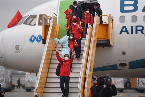Thầy trò HLV Mai Đức Chung được đón tiếp nồng nhiệt khi trở về nước