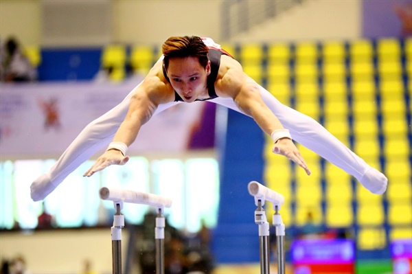 Tranh tài ở nội dung cuối xà đơn, hầu hết VĐV nước chủ nhà đều cho thấy kỹ thuật đỉnh cao. Chỉ duy nhất Nguyễn Văn Khánh Phong để lại tiếc nuối bởi phần tiếp đất chưa tốt. Dẫu vậy, anh vẫn nhận được sự cổ vũ nồng nhiệt từ khán giả có mặt tại Cung thể thao Quần ngựa.
