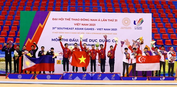 Kết thúc nội dung đồng đội nam, đội tuyển Thể dục dụng cụ nam xuất sắc giành tấm HCV thứ 19 cho đoàn thể thao Việt Nam. Đoàn Philippines với 301,600 điểm có trong tay tấm HCB. Singapore đem về tấm HCĐ cùng tổng 297,650 điểm.