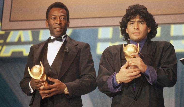 Pele (trái) "hẹn" Maradona chơi bóng ở trên thiên đường
