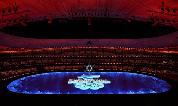 Giữa thời tiết giá rét, sân khấu của lễ bế mạc Olympic Bắc Kinh 2022 đã được trang hoàng bằng công nghệ ánh sáng hiện đại, sử dụng gam màu đỏ chủ đạo với thông điệp về tình cảm ấm áp mà người dân Trung Quốc muốn gửi đến bạn bè quốc tế.