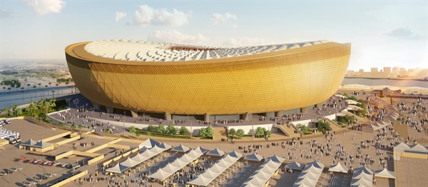 Mô hình SVĐ Lusail, sức chứa 80.000 chỗ, dự kiến hoàn thành năm 2020. Với cấu trúc bát vàng có hình dạng như chiếc đèn lồng fanar nhằm tôn vinh nghề thủ công cổ xưa của Trung Đông, sân Lusail là nơi tổ chức trận khai mạc và trận chung kết World Cup 2022. Nguồn: FIFA.com