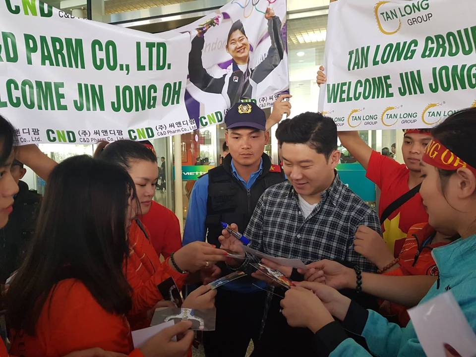 Jin Jong Oh được đông đảo người hâm mộ đón tại sân bay. Ảnh: Minh Khánh