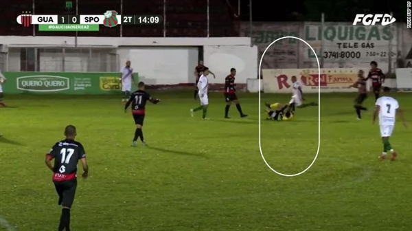 Trọng tài Rodrigo Crivellaro bị cầu thủ cố ý đá vào đầu (Ảnh: CNN)
