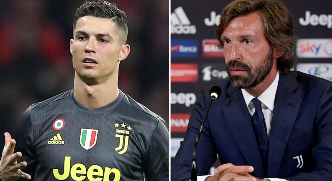 Sự xuất hiện của tân HLV Pirlo (phải) là một phần lý do giúp CR7 ở lại Juventus