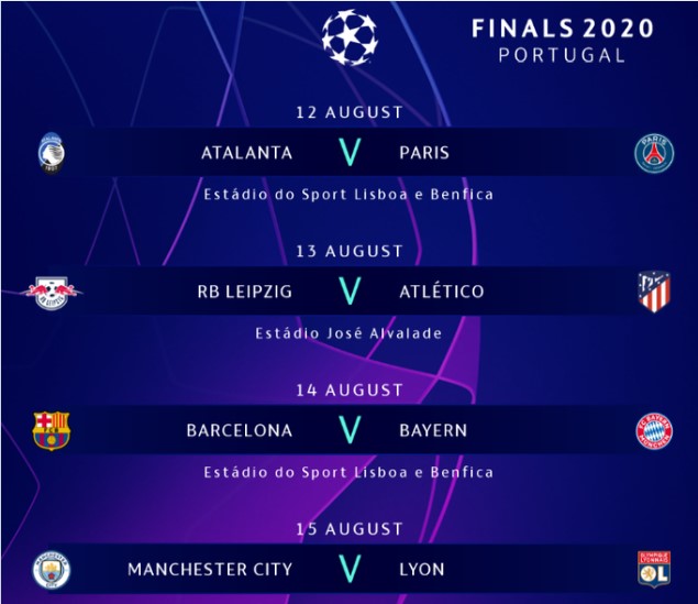 Cùng với Leipzig, Atalanta, PSG, Atletico Madrid, Man City và Lyon, Barcelona và Bayern Munich là 2 cái tên cuối cùng giành quyền vào vòng tứ kết. Theo kết quả bốc thăm, vòng 8 đội mạnh nhất sẽ diễn ra các cuộc đối đầu đáng chú ý giữa Barcelona và Bayern Munich, Man City và Lyon, Atalanta và PSG, RB Leipzig và Atletico Madrid.