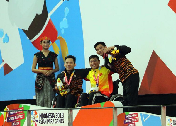 Võ Thanh Tùng (thứ hai từ phải) lần thứ ba nhận HCV tại Asian Para Games 3