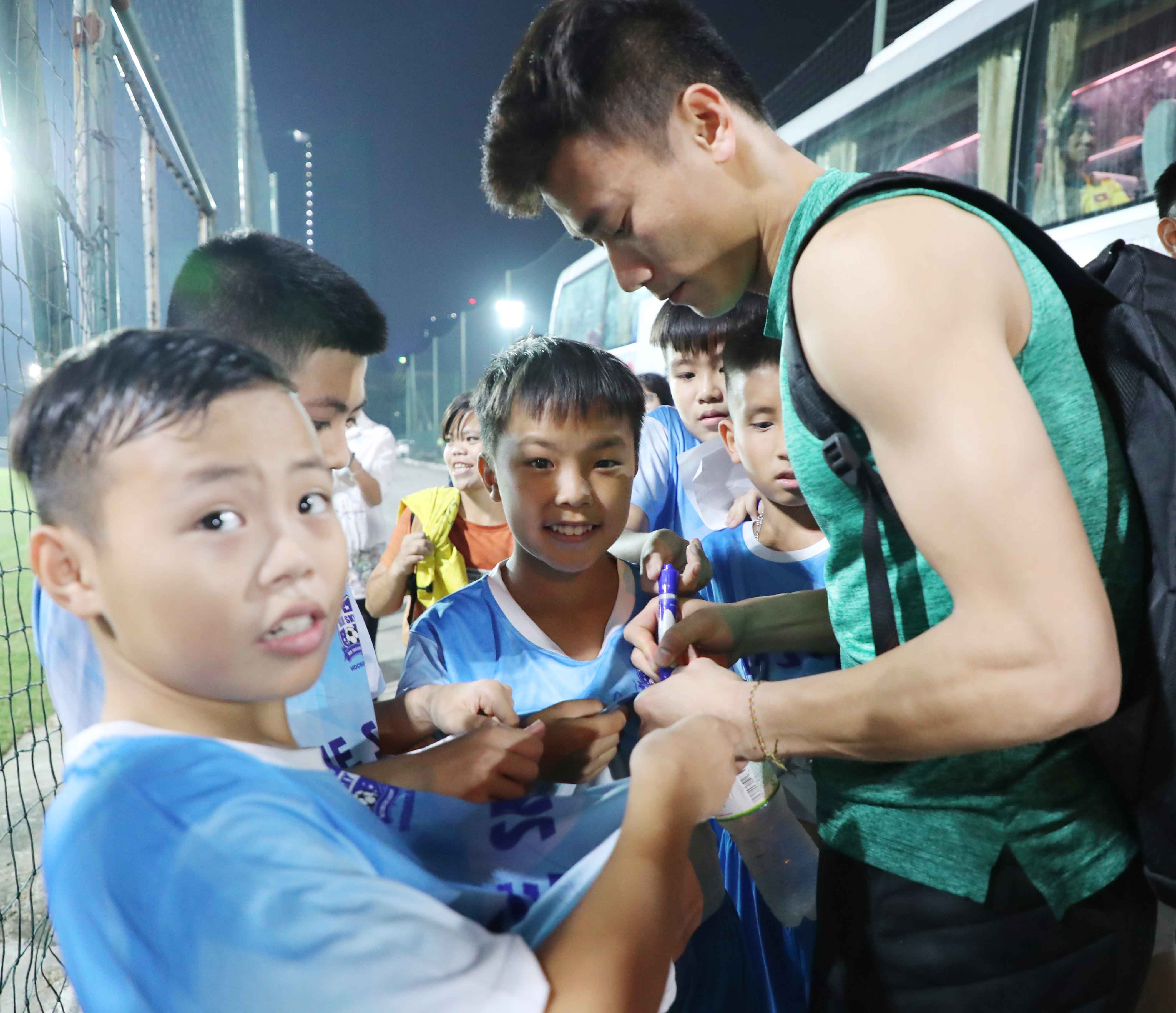 Các cầu thủ nhí xin chữ ký của Thủ môn Bùi Tiến Dũng