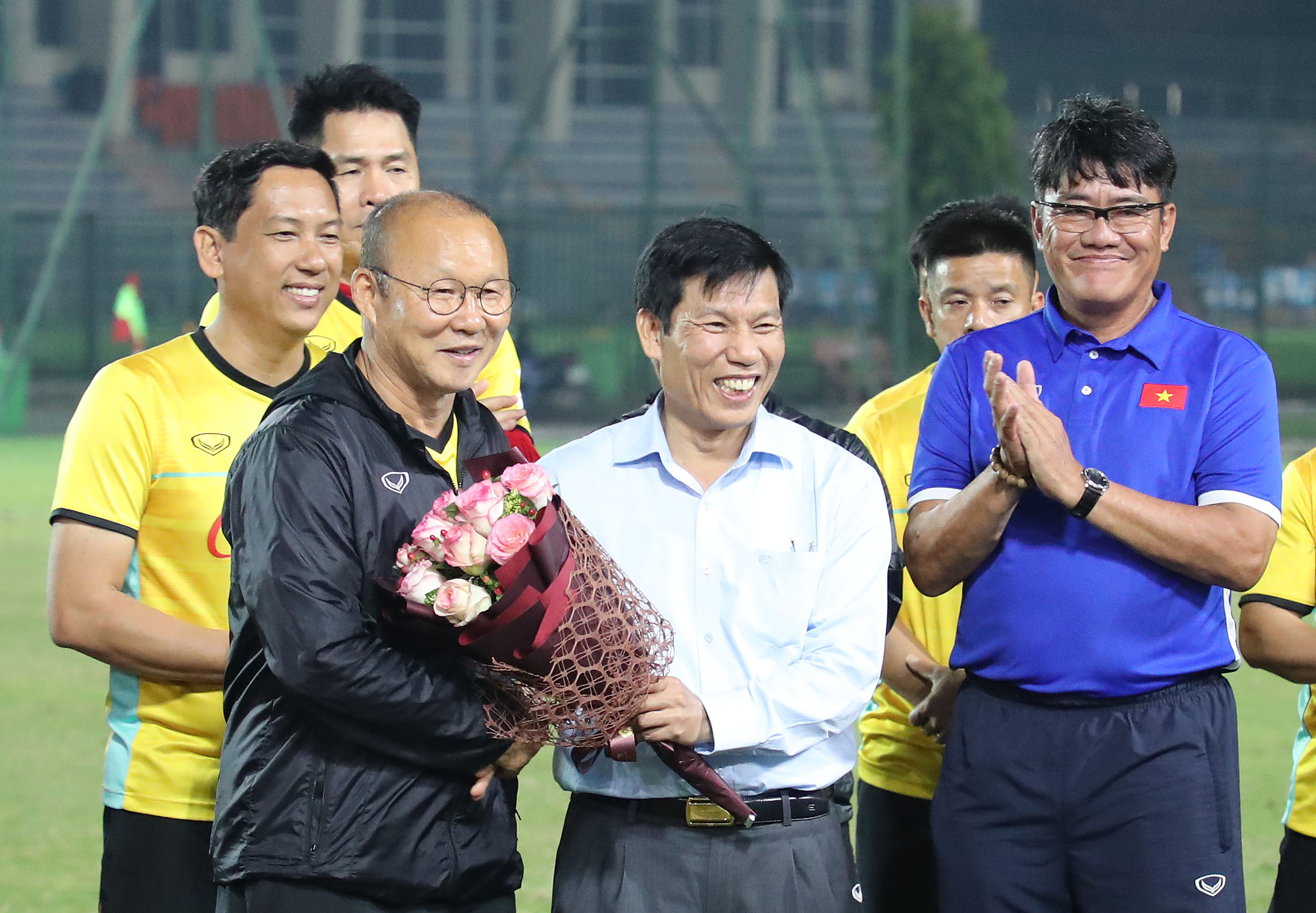 Bộ trưởng tặng hoa HLV Park Hang-seo