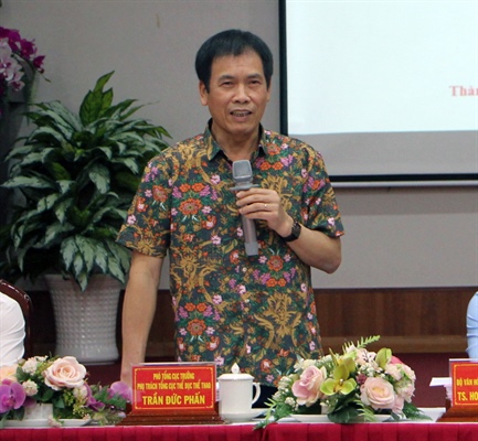 Phó Tổng Cục trưởng phụ trách Tổng Cục Thể dục thể thao Trần Đức Phấn trao đổi tại buổi gặp gỡ