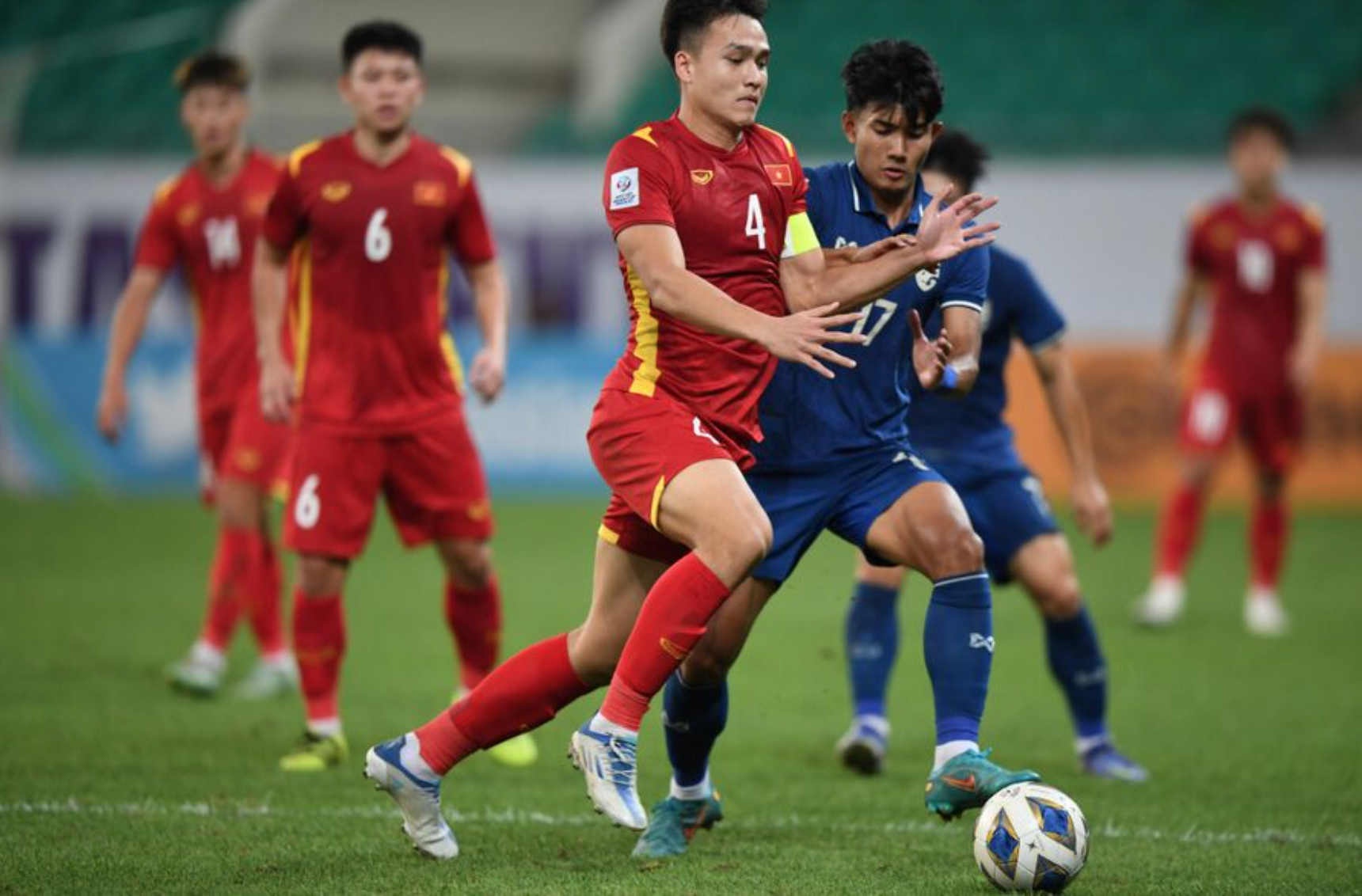 Trước trận đấu với U23 Thái Lan, U23 Việt Nam nhận tin không vui khi trung vệ Thanh Bình và tiền vệ Lý Công Hoàng Anh bị đau bụng, có dấu hiệu ngộ độc thực phẩm, điều này buộc HLV Gong Oh-kyun gạch tên 2 cầu thủ này ở đội hình xuất phát. HLV người Hàn Quốc chỉ sử dụng 7 nhà vô địch ở SEA Games 31 trong đội hình ra sân là: Thủ môn Văn Toản, hậu vệ Duy Cương, Tiến Long, Việt Anh, Tuấn Tài, tiền vệ Văn Đô, tiền đạo Mạnh Dũng, bốn vị trí còn lại là Văn Khang, Danh Trung, Văn Trường và Minh Bình. Trong khi đó, U23 Thái Lan có được lực lượng mạnh nhất, HLV Srimaka đã tung đến 9 cầu thủ đang thi đấu nước ngoài trong đội hình xuất phát.