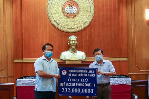 Ông Nguyễn Mạnh Hùng, Giám đốc Trung tâm HLTTQG Hà Nội thông tin: “Hưởng ứng lời kêu gọi của Chủ tịch nước và Đoàn Chủ tịch UBTƯ MTTQ Việt Nam chung tay quyên góp xây dựng Quỹ vắcxin phòng dịch Covid-19, tập thể HLV, VĐV, cán bộ, công chức, viên chức, người lao động của Trung tâm đã nhiệt tình hưởng ứng”. Thông qua hoạt động thiết thực này, tập thể HLV, VĐV, cán bộ, công chức, viên chức, người lao động của Trung tâm muốn gửi thông điệp về tinh thần quyết thắng của thể thao tới đội ngũ các y, bác sĩ, những người đang trên tuyến đầu phòng chống dịch bệnh.
