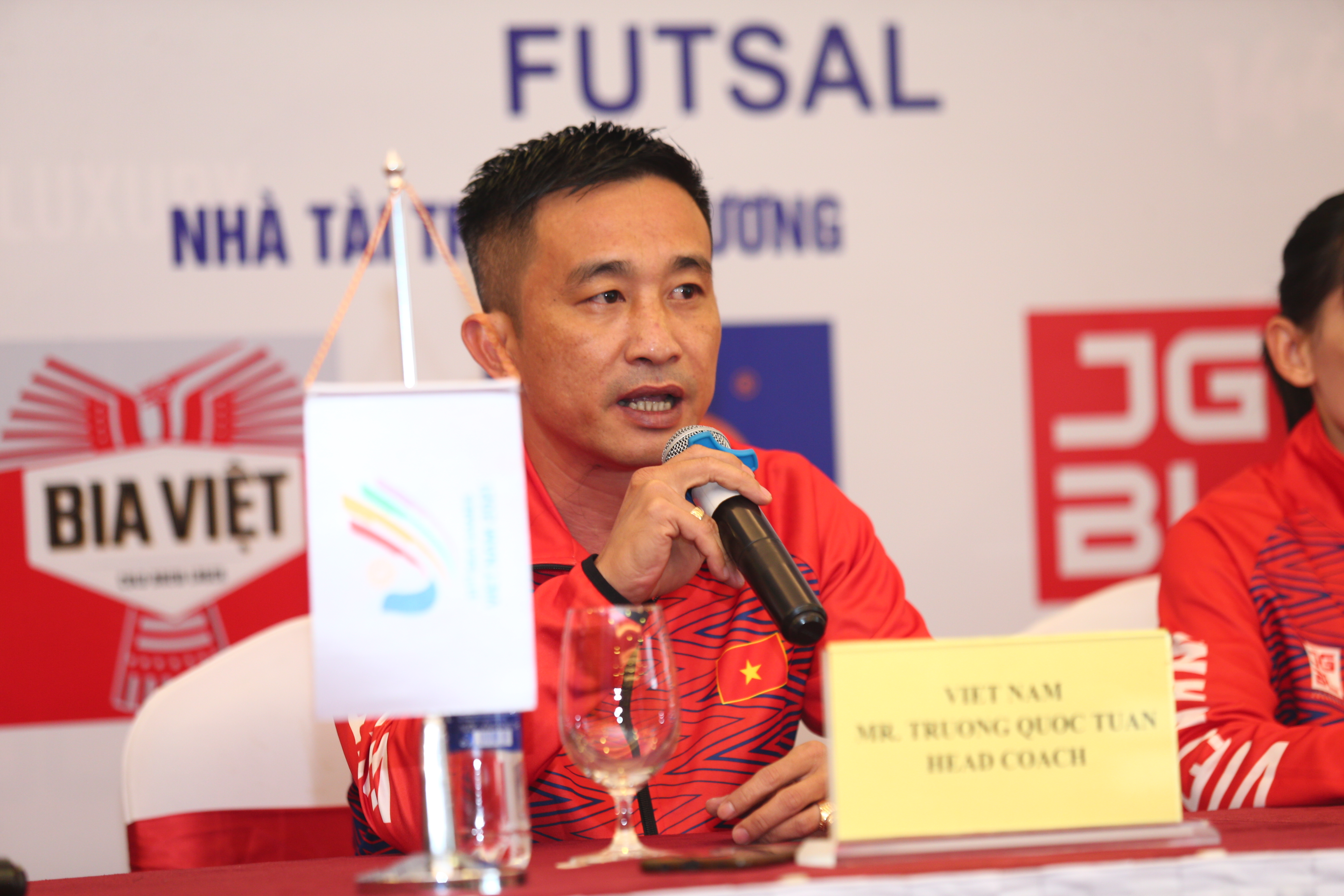 Tại buổi họp báo, HLV trưởng Trương Quốc Tuấn cho biết: “Từ lâu rồi thì Futsal nữ mới được tổ chức trở lại, các cầu thủ khá thiếu kinh nghiệm quốc tế. Chúng tôi khá lo lắng nhưng cũng đã được giao hữu quốc tế. Mục tiêu của chúng tôi ở SEA Games tổ chức tại sân thì Ban huấn luyện đặt mục tiêu sẽ cố gắng giành huy chương vàng”.
