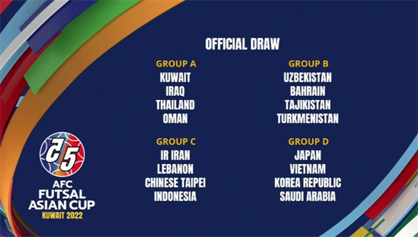 Chiều 26.5, Liên đoàn bóng đá châu Á (AFC) đã tiến hành tổ chức bốc thăm, chia bảng Vòng chung kết Giải Futsal vô địch châu Á 2022, diễn ra từ ngày 25.9 đến 20.10 tại Kuwait.