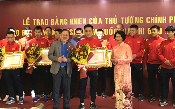 Trong khi đó, đội trưởng Trần Văn Vũ cho rằng việc đội tuyển Futsal Quốc gia vinh dự nhận Bằng khen của Thủ tướng Chính phủ sẽ động lực lớn về tinh thần giúp anh và đồng đội cố gắng tập luyện, nỗ lực hơn nữa để mang lại thành tích cao cho Futsal nói riêng và thể thao Việt Nam nói chung.